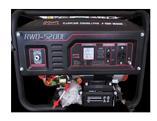 Генератор RWD-5200E. Максимальная выходная мощность – 3,0 кВт; средний-2,8кВт. включается с помощью выключателя и руки; модель двигателя