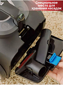 Дополнительные функции включают автоматическую смотку шнура, индикацию режима работы и мощности, а также удобное управление на рукоятке. Отсек для насадок помогает держать аксессуары под рукой, сохраняя порядок и экономя время при смене насадок.