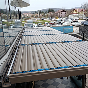 Ламели открываются и закрываются под нужным углом. В закрытом положении крыша полностью герметична и не пропускает воду, а дождь отводится через встроенную дренажную систему.