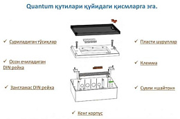 Распределительные щиты Quantum отличаются большим размером и уникальным внешним видом, чем обычные коробки. В более крупной коробке установка проще, а электрическая проводка внутри аккуратно проложена. Использование материала ABS делает коробку более устойчивой к внешним воздействиям и высоким температурам. Антистатические - пыленепроницаемые и устойчивые к ультрафиолетовому излучению свойства гарантируют пользователю долгий срок службы.