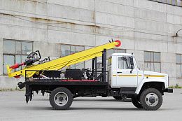 Установка собрана на основе шасси автомобиля ГАЗ. Максимальный диаметр бурения шнеками равен 350 мм. Глубина бурения скважин – до 350 м. Максимальный крутящий момент в параллельном режиме – 3000-6000 Н*м.