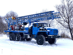 Буровой агрегат БА-15 на шасси УРАЛ, в комплекте с насосом НБ-50, Однобарабанная лебёдка, ротор Р-410, вертлюг с траверсой, квадрат 80х80х9000.