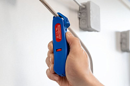 Стриппер для кабеля S 4-28 обеспечивает точную, быструю и безопасную зачистку всех распространенных круглых кабелей диаметром от 4 до 28 мм. Глубина реза лезвия плавно регулируется с помощью регулировочного винта на корпусе. Это предотвращает повреждение внутреннего проводника. Режущее лезвие закреплено в корпусе и вращается независимо, что позволяет автоматически переключаться между круговым и продольным разрезом. Кроме того, S 4-28 оснащен крючкообразным лезвием, которое убирается в корпус. Лезвие фиксируется в обоих положениях. Это значительно снижает риск травмирования твердыми лезвиями.