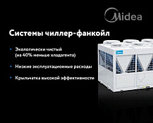 Один из основных видов продукции компании Midea — центральные системы кондиционирования типа «чиллер — фанкойл». Это оптимальное решение для больших помещений такие как гостинцы, школы, клиники, торговые центры, заводы, спорт комплексы и др. Чиллеры отличаются удобством использования. Своей популярностью она благодарна возможностью регулировать микроклимат сразу в двух отдельных помещения. Чиллеры от компании MIDEA станут отличным решением для тех, кто предпочитает высококачественную технику. Их можно установить в подсобном помещении или на крыше здания, не нарушая целостность фасада.