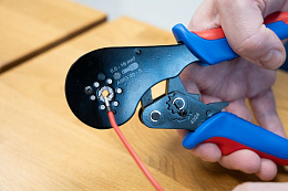 Точный рабочий процесс благодаря защелкивающемуся механизму с блокирующим устройством. Безопасный зажим — инструмент открывается только после процесса зажима. Аварийная разблокировка на рукоятке (при неправильном использовании). Шестигранный обжим облегчает установку в круглые клеммы. Рабочий диапазон 0,5–16 мм² (AWG 20-5). Регулируемое усилие зажима. Изготовлены из двухкомпонентных стальных многозубчатых ручек.