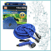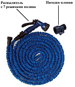 Саморастягивающийся шланг поливочный из пластмассы, с распылителем и насадкой-клапаном.