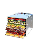 Дегидратор Hurakan HKN-DHD10 предназначен для сушки ягод, фруктов, овощей и грибов на предприятиях общественного питания и торговли. Модель оснащена 10 уровнями решеток и таймером (до 15 часов). Корпус выполнен из нержавеющей стали.