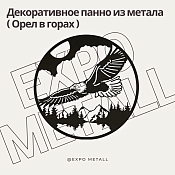 КОМПАНИЯ EXPO METALL изготавливает декоративные панно из металла на заказ. Модель "Орел в горах". Выполняем в любом размере по вашему желанию. Используем качественный металл, точная лазерная резка, аккуратная сварка и покраска. Прекрасное украшение для интерьера дома, офиса, ресторана или фасада здания. Цена зависит от размера, выбранного материала и сложности. При оптовом заказе (от 2-3 штук) стоимость снижается. Срок изготовления обсуждается индивидуально и зависит от объема работы.