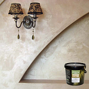 В материал включены частички натурального мрамора, искристого пигмента и перламутра, что придает стенам в зависимости от падающего освещения, разнообразие оттенков и праздничную атмосферу.