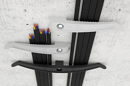 Существуют варианты исполнений держателя кабеля. Односторонний для фиксации до 8 кабелей или двусторонний с возможностью фиксации до 16 кабелей. Это расширяет возможности при подборе оптимального способа прокладки кабельных линий.