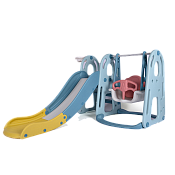 Детский комплекс горка с прямым скатом и качели, качели регулируются, сбоку горки баскетбольное кольцо.