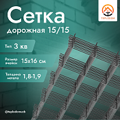 Дорожная сетка 15х10 (1,8-1,9) (3 кв) — это идеальный выбор для обеспечения прочности и долговечности строительных и дорожных конструкций, обеспечивающая стабильность и надёжность в самых сложных эксплуатационных условиях.