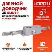 Доводчик 3S Slider произведен с соблюдением всех требований государственных стандартов качества. Сертифицирован по ГОСТ Р на надежность работы Класс доводчика EN 2-3