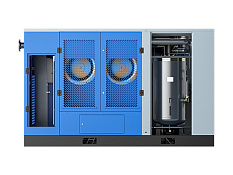 Двухступенчатый винтовой компрессор серии H: После сжатия воздуха на первой ступени он охлаждается посредством усиленного впрыска масла для снижения температуры всасывания на второй ступени.