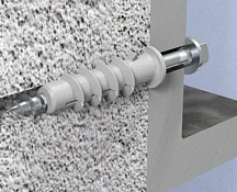 Дюбель для газобетона пластиковый представляем собой крученую конструкцию с наружными ребрами, которые в процессе монтажа врезаются в основание пористого материала, но позволяя прокручиваться в отверстии. Внутренняя полость дюбеля не предусматривает сужения для расширения в момент вкручивания шурупа или самореза. Это необходимо для сохранения целостности просверленного отверстия. Процесс монтажа дюбеля для пенобетона не отличается от установки простого пластикового дюбеля. В основании просверливается отверстие согласно требуемого диаметра и дюбель поступательными движениями забивается в газобетон. Подбирать метиз для фиксации детали необходимо строго с требованиями производителя, поскольку в случае уменьшения диаметра самореза с дюбелем не будет осуществлен надежный контакт, а в случае с большим диаметром, чем предусмотрено, произойдёт разрушение внутренней канавки дюбеля, облом лепестков и как следствие прокручивание в отверстии.