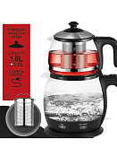 Sonifer SF-2089 — это стильный стеклянный чайник с двумя ёмкостями: 1,2 л и 1,8 л, идеально подходящий для быстрого приготовления чая, кофе или других горячих напитков.