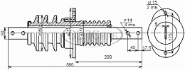 ИПУ - 10/630 - 7,5 МУХЛ1 - Номинальное напряжение 10 кВ. Номинальный ток - 630-1000 А, минимальная разрушающая сила на изгиб 7,5 кН, длина пути утечки между точками Б и В не менее 30 см