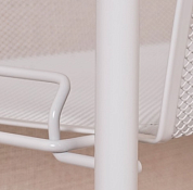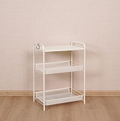 На корзинах поместятся кухонные принадлежности, овощи и фрукты, различная химия, косметику, цветы, игрушки и книги. Верхняя полочка - столик так-же выполнена из металла и делает изделие еще более функциональным. В комплекте дополнительный аксессуар - пластиковый крючок. Полка выпускается в популярных цветах - белый, серый, черный, графит и медный, поэтому подойдет практически под любой дизайн интерьера. Отличный подарок для тех, кто ценит порядок. Лёгкая сборка без инструментов. Изделие в картонной упаковке с удобной ручкой - легко донести от пункта выдачи до дома.