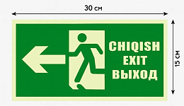 Эвакуационное табло (фосфорное) “CHIQISH / EXIT / ВЫХОД” со стрелкой налево