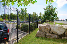 Панели ограждений изготовлены из вертикальных и горизонтальных, стальных прутьев, сваренных точечной сваркой, образующих ячейки различных размеров. В конструкции панелей ограждения предусмотрены дополнительные, пространственные изгибы – за счет чего достигается 3D эффект и прочность несмотря на видимую невесомость.