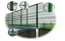 Современные панельные заборы 3D и 2D — это ограждения из металлической сетки. Еврозабор 2D состоит из проволоки без изгибов, ограждение 3D – с изгибом. Прутья соединяются методом точечной сварки, которая обеспечивает 3D или 2D сетке прочность. От их толщины (3-5 мм) зависит прочность забора, его визуальное восприятие и цена. Чем толще прутья - тем выше стоимость. Цветовая гамма - 4 стандартных цвета или RAL цвет под заказ.