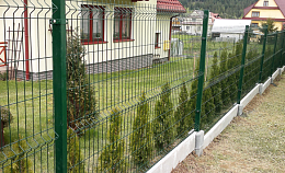 3D сетка из проволоки Ø4мм, Ø5мм, с полимерным покрытием, удобны в монтаже и долговечны. Высоту конструкции, вариант опор и толщину проволоки вы можете выбрать согласно вашим потребностям. Надежность, а также удобство эксплуатации позволяют использовать их как частным лицам на загородных участках и дачах, так и в качестве ограждения на территории заводов, различных производств, для зонирования территории внутри на государственных объектах