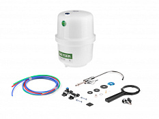 - Предварительная очистка (подготовка воды для увеличения срока службы мембраны): осадочные картриджи РР 5 - 10SL — удаляют нерастворимые частицы размером до 5 мкм (ржавчина, взвеси) - 2 шт.; CBC 10 - 10SL — карбон-блок из высококачественного кокосового активированного угля пористостью 10 мкм. - 1 шт.