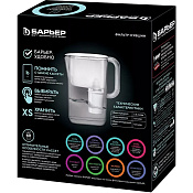 В комплекте с кувшином кассета БАРЬЕР Жесткость для вкусной воды без накипи. Кассета умягчает воду, защищает от хлора, тяжелых металлов и других вредных примесей.