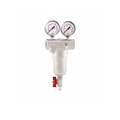 Поставляется с извлекаемым картриджем, двумя манометрами и краном со штуцером для слива загрязнений.