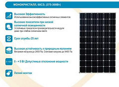 Фотоэлектрический модуль «Монокристал», 60 СЭ, (275-300 Вт) (солнечные батареи)