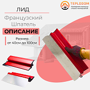 Малярный профессиональный шпатель применяться для нанесения и разравнивания декоративной штукатурки, стекло тканевой сетки, стекло обоев, нанесения и разравнивания шпаклевочных масс, при нанесении ручным и машинным способом. Значительно увеличивают производительность, позволяя эффективно обрабатывать большие поверхности за короткое время. Делает каждое движение мастера эффективным, не заставляя повторять одно и то же действие по несколько раз. Шпатели также подходят для работы с декоративной штукатуркой. Не оставляет изъянов в виде неравномерных переходов уровней, шероховатостей, полос и т. д.