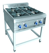 Газовая плита 4-х горелочная ПГК-49 П крашенная подставка, (предназначена для приготовления первых, вторых и третьих блюд в наплитной посуде. Плита имеет три горелки по 5,5 кВт и одну мощную горелку - 7,5 кВт. Плита снабжена системой автоподжига и устройством «газ-контроль». Внизу открытая разборная подставка. Полная мощность –24 кВт (ккал.), расход природного газа - 1,86м3/ч, габ. разм.- 800x893x977 мм, полностью изготовлена из нержавеющей стали, масса-95 кг)