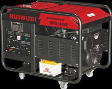 Двигатель-RWD170F/P. Работает на бензине. Объем топливного бака составляет 25 литров. Объем масляного бака 45 литра. Расход топлива – 0,5 л/час (на 1 кВт). Гарантия 1 год. Охлаждается воздухом, работает при 220./380