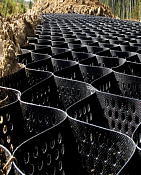 Характеристики Размер ячейки: 210х200 мм Высота: 200 мм Разрывная нагрузкаполоски размером 50х100мм: 24,2 кН/м Длина модуля в рабочем состоянии: 5960+-50 Ширина модуля в рабочем состоянии: 2450+_20 Форма выпуска: модули Материал: Полистилен
