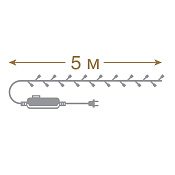 Гирлянда доступна в трех вариантах длины: 5, 10 и 20 метров. Таким образом, у вас есть возможность выбрать оптимальную длину в зависимости от размера помещения или елки, на которую вы планируете установить гирлянду.