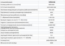 | Specifications | VMC650 | VMC850 | VMC855 |