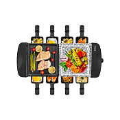 Панель можно снять и установить вместо нее шпажки с нанизанным на них мясом, овощами и колбасками.
