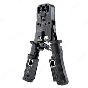 HT-022 – универсальный инструмент, при помощи которого Вы с легкостью сможете реализовать задачу по обжиму разъемов RJ-45, RJ-12 и RJ-11, а также по снятию изоляции и зачистке кабелей телефонного типа. В дополнение к инструменту идет интегрированный кабельный тестер, рассчитанный на UTP / FTP кабеля. Изготовление ручки с устойчивого к скольжению пластика дало повышенный уровень безопасности при работе с инструментом. В основе корпуса лежит углеродная оксидная сталь. Питание тестера строится на трех батарейках типоразмера LR-44.