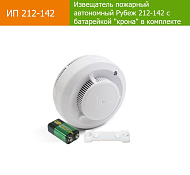 Извещатель не реагирует на изменение температуры, влажности, на наличие пламени, естественного или искусственного света. Возврат извещателя в дежурный режим происходит через 20 с после прекращения действия на него дыма. Извещатель ИП 212-142 является автономным и не предусматривает его подключение в любые внешние цепи - шлейфы сигнализации, линии питания и т.п. Электрическое питание извещателя осуществляется от устанавливаемого внутрь элемента питания «Крона» номинальным напряжением 9 В, который входит в комплект поставки.