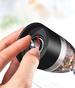 Данный измельчитель специй/перца/соли изготовлен из пластик с керамическим механизмом размола и имеет настраиваемую степень помола.