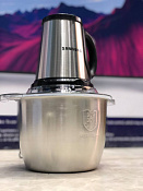 Мощный измельчитель с огромной металлической чашей 3.5 литра, неубиваемым мотором 400 Ватт и четырехгранным лезвием из легированной стали нарубит за считанные секунды на мелкие кусочки сыр, мясо, шоколад, зелень и так далее.