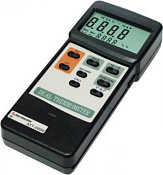 Двухканальный портативный цифровой термометр с возможностью передачи данных в ПК. Имеет хорошую точность измерений, современный дизайн, прочный и удобный корпус. Прибор снабжен рядом дополнительных функций, среди которых удержание показаний, отображение максимальных и минимальных значений в ходе измерения, определение разности температур и др.