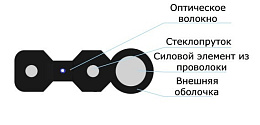 Кабель оптический INSTALL-FTTx 1 волокно (G.657.A) стеклопруток с тросом (проволока) (катушка 2км)