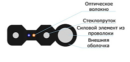 Кабель оптический INSTALL-FTTx 2 волокна (G.657.A) стеклопруток с тросом (проволока) (катушка 2км)