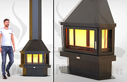-Данная модель камина оснащена дверью призматической формы с огнестойким стеклом. Открывается отличный вид на живой огонь.