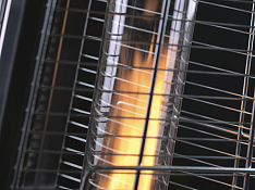 Уличный камин изготовлен из устойчивой к коррозии легированной нержавеющей стали и защищен от попадания атмосферных осадков сверху четырехгранным отражателем, площадь поверхности которого составляет 0,5 м². За безопасность эксплуатации отвечает многоуровневая система защиты. Датчик наклона отключает пламя при наклоне газового обогревателя более чем на 45°, термоэлектрический датчик и электромагнитный клапан сразу же останавливают подачу газа в критических ситуациях, таких как затухание пламени или утечка газа. За счёт встроенной колёсной базы обогреватель свободно и безопасно можно перемещать по любой поверхности.
