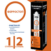 БАРЬЕР ЭКСПЕРТ Ферростоп содержит специальный многослойный материал, эффективно удаляющий не только железистые взвеси, но и растворенное железо даже при его повышенной концентрации до 5 ПДК. Финишный слой препятствует сбросу отфильтрованного железа в чистую воду. Подходит к любому фильтру из семейства БАРЬЕР Эксперт. Используется в качестве первой ступени в фильтре "БАРЬЕР ЭКСПЕРТ Комплекс" и "БАРЬЕР Жесткость Железо" и в качестве второй в фильтре "БАРЬЕР ЭКСПЕРТ Железо". Картридж заменяется удобно, одним движением, без специальных инструментов. Технология Smart lock обеспечивает защиту от протечек. Ресурс — 10 000 л. Производительность 2 л/мин. С БАРЬЕР удобно: ЗАМЕНЯТЬ картриджи без специальных инструментов. СОВМЕЩАТЬ со всеми проточными фильтрами БАРЬЕР Эксперт и БАРЬЕР Актив.