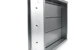 смонтированы поворотные лопатки , ТЭНов и привода (ручного или электромеханического). Клапаны по запросу устанавливается трубчатые электронагреватели (ТЭН) в каждом стыке поворотных лопаток