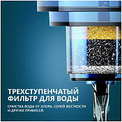 Система водоподготовки включает проточный фильтр из активированного угля, ионообменной смолы и циолита, эффективно очищающего воду от всех видов загрязнений.