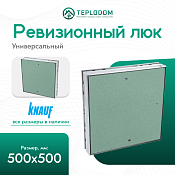 Ревизионный люк Knauf универсальный 500x500 — это продукт, предназначенный для доступа к скрытым коммуникациям, таким как трубы, проводка и другие инженерные системы, которые находятся за подвесными потолками или в стенах. Размер 500x500 мм — это стандартный размер люка, подходящий для большинства нужд в строительстве и ремонте.